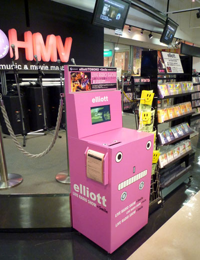 「HMV横浜VIVRE」にてピンクのロボットくん、