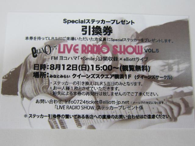 ※LIVE RADIO SHOWステッカープレゼントお問い合わせ: info0724ticket@elliott-jp.net