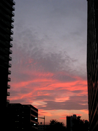 おとなしく買い物を済ませて、友人宅に向かう途中の夕日を「パシャ」