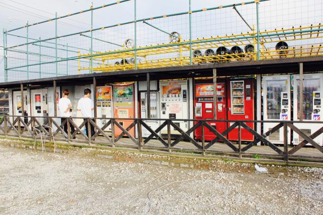 タイヤの並ぶお店の横には、昭和レトロな自動販売機がずらり並んでいます。その景色は圧巻!タイヤ交換を待つお客様に楽しんでもらえたら…ということをきっかけに、懐かしの自動販売機(食品調理販売機)置くことを決めたと話してくださった齋藤社長。
