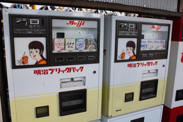 昭和40年-50年代の年季の入った自動販売機。修理が必要な時は斎藤社長ご自身でしているそうです。今では部品もないものも多く、そんな場合は似たような部品を作っていると。