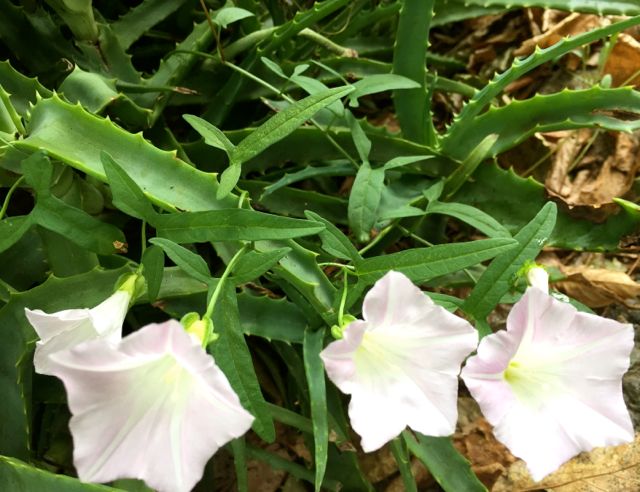 よ~く観たら確かに!アロエに混ざった別の植物の花でした。