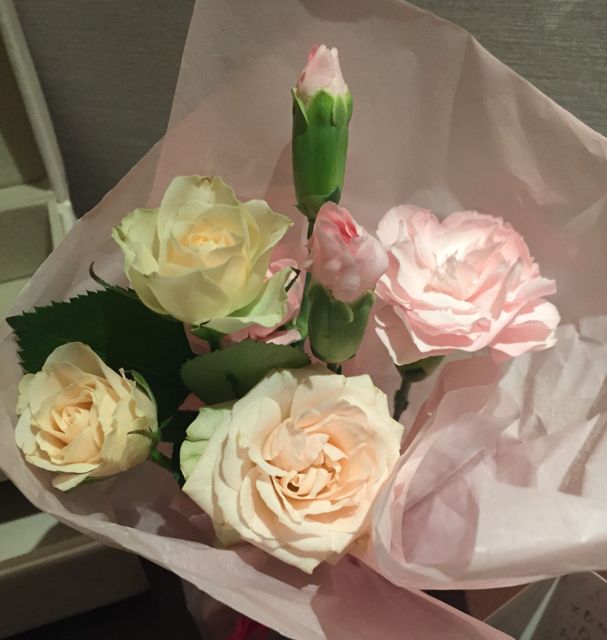 花 Posted 2016年10月3日 by tomoko 淡いピンクの可愛いブーケ。 花を贈られるって… 嬉しいものですね。 帰ってきて すぐに花瓶にいけました。 部屋が明るくなる^^ ありがとうマコちゃん。