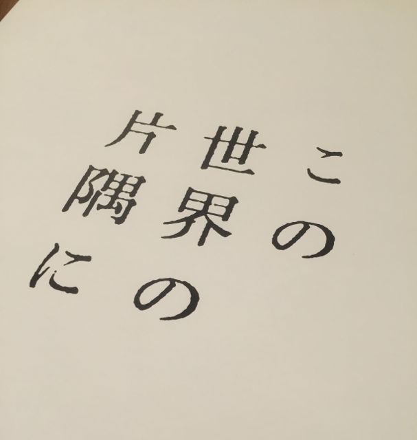 この世界の片隅に Posted 2017年1月12日 by tomoko 映画「この世界の片隅に」を観た。 なんてあたたかくて なんて心を揺さぶられる。 主人公のすずさんのやわらかい微笑みに、 胸の中にある固いものが じんわりと溶けていく気がした。 何度でも何度でも観たい作品。