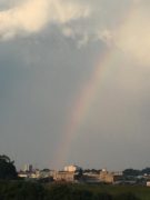 虹 Posted 2017年6月16日 by tomoko 虹虹をみた。 雨が上がり、雲の隙間から 光が差し込んで。 うっすらと七色の虹。 しばらくして消えたけど、 確かにそこにあった虹の橋。 きれいだったなー。