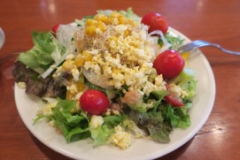 サラダバーに夢中。