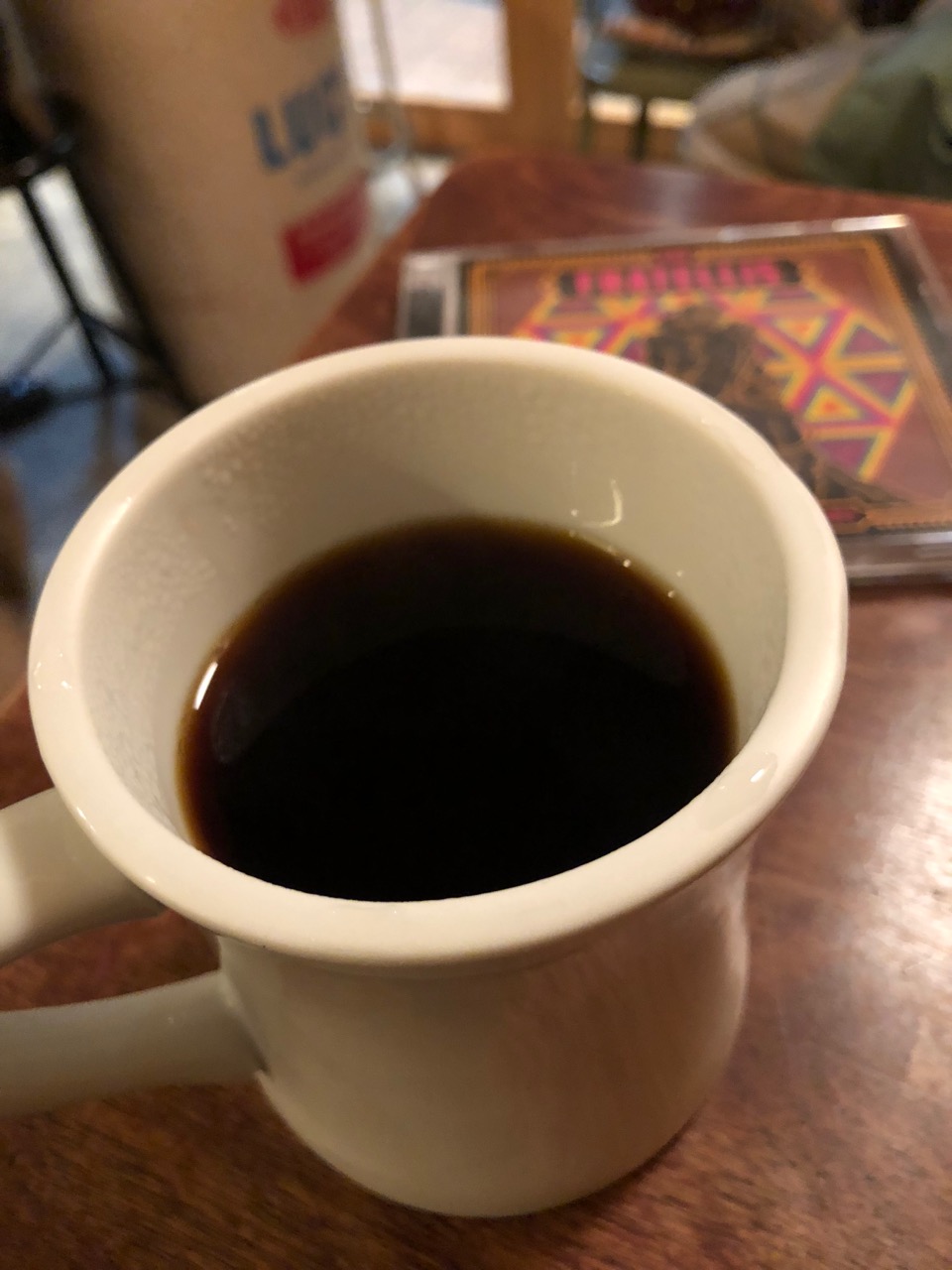 スタジオに行く前に少し時間があった。コーヒーを飲みに。四角い小さなスピーカーから聴こえる良い音がコーヒーにとても合う。