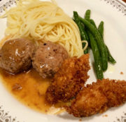 メニューはカキフライとミートボール♪