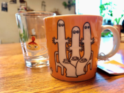 オレンジのマグカップ。