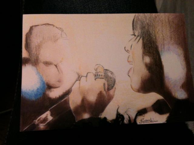 年賀状 Posted 2013年1月7日 by tomoko カワイイお子さんの写真や巳年のイラスト あたたかいメッセージ…今年も年賀状を くれた皆さんどうもありがとう。 年賀状っていいですね^^ みんなの字に絵に言葉に貼ってくれたシールにも 幸せを、Smileをもらってます♪ありがとう。 Present年末のメッセージビデオを観て 絵を書いて送ってくれた方もいました^^ 歌っている時の姿を描いてもらったのは初! とても嬉しいです。 心のこもった皆さんからのあたたかい年賀状 大切にします。どうもありがとう。