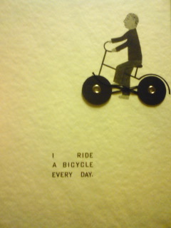 NOTE BOOK Posted 2010年11月8日 by tomoko 気持ち良さそうに走る自転車 I RIDE A BICYCLE EVERY DAY これはノートの表紙^^ あまりに気持ち良さそうで 見ていたら何を書こうかな~と 文字が頭の中にウジャウジャと。 感じるままに… 愛しい言葉♪思い出したり。 裏表紙にリラーックスなイラストと右上には…とても印象的な一文 LIFE IS BEAUTIFUL 幸せ~な気分になった。毎日走って、そして休んでいろいろ浮かべて…^^ お気に入りのNOTE BOOK