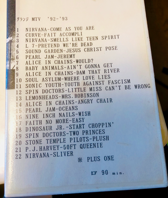 MTV Posted 2020年4月10日 by tomoko CDや本の整理をしている。 デッキが無く、見れないのが悔しいけど、 大好きだったグランジのMVを録画したビデオも発見。 MTVが観たくて観たくてたまらなかった当時。 しかし家では観られず、近所の店に通ってチェックしていた。 1992年のことです。今は自宅で観れる。Youtubeもある。 当時からしたら、夢のような未来。